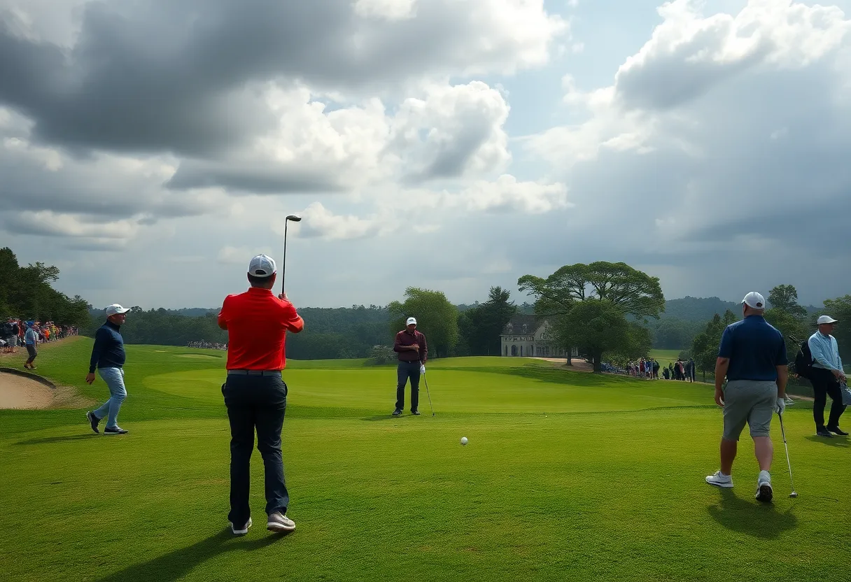 Golfers navigate challenging conditions during the Heartland Open Golf Tournament.