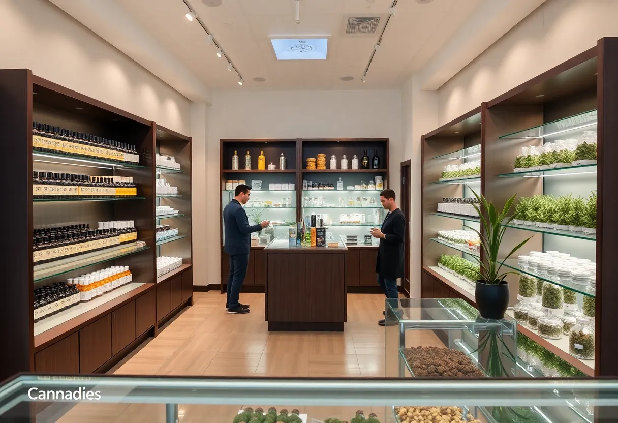 Interior view of a medical cannabis dispensary showcasing a variety of products.