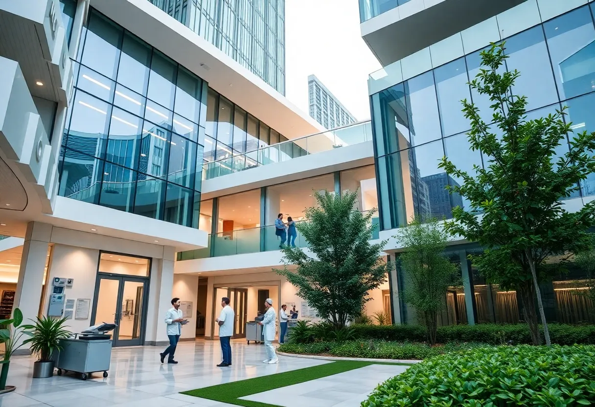 Key features of the facility include advanced simulation labs for training healthcare professionals and sustainable design elements to reduce environmental impact. These additions will support hands-on learning for students and improve overall efficiency in patient care delivery. Environmental assessments are currently in progress to ensure the development minimizes disruption to the urban midtown area.