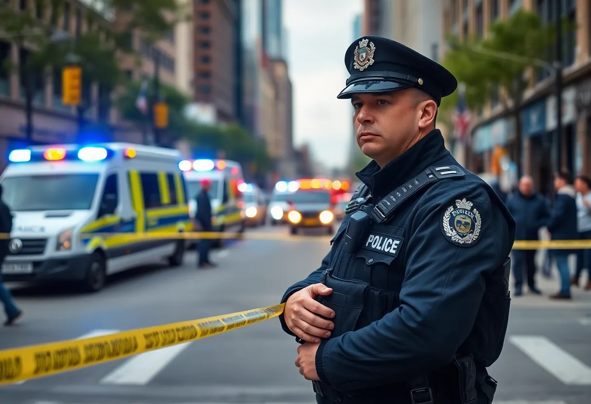 Police officers secure the area following a shooting incident in downtown Omaha.
